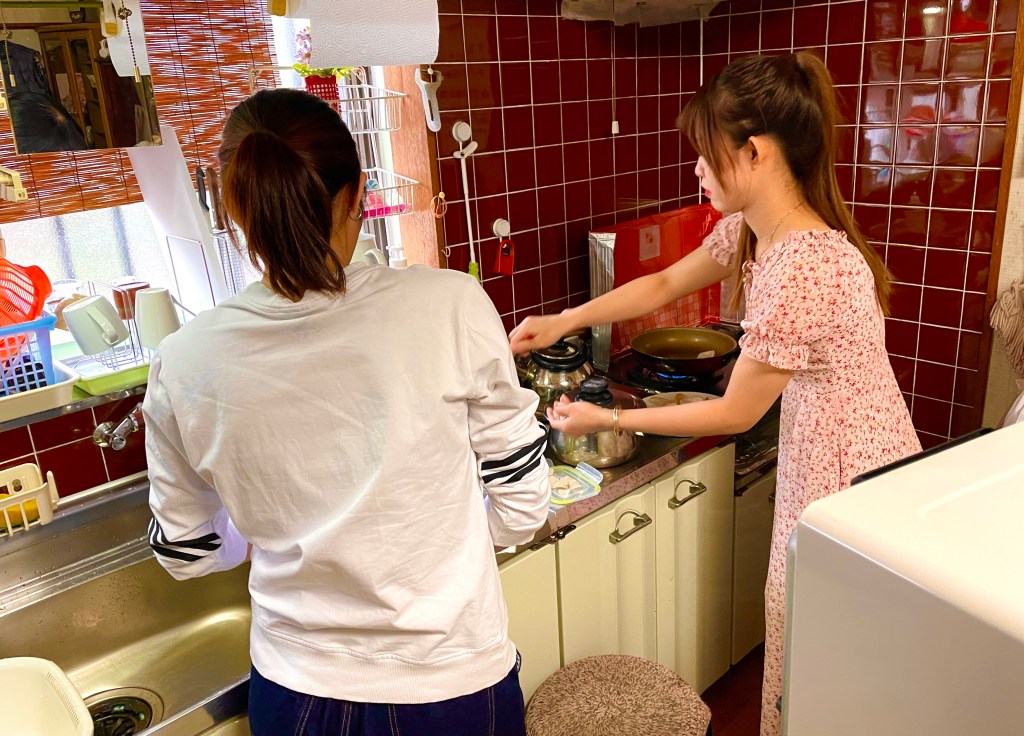 朝から家に来てもらい、春巻きとサラダ?を作ってもらいました。チャンさん、ミーさんと。