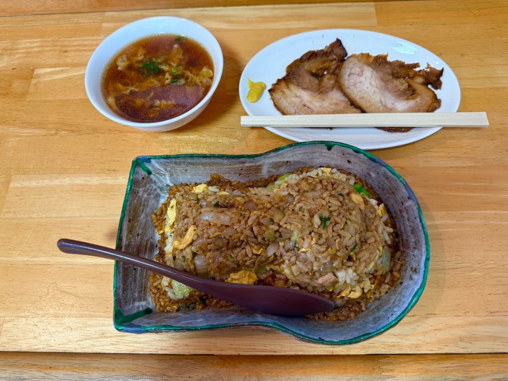 オイスター味のコーフンチャーハンと自家製チャーシュー2枚。追加でギョーザ3個食べてきました。