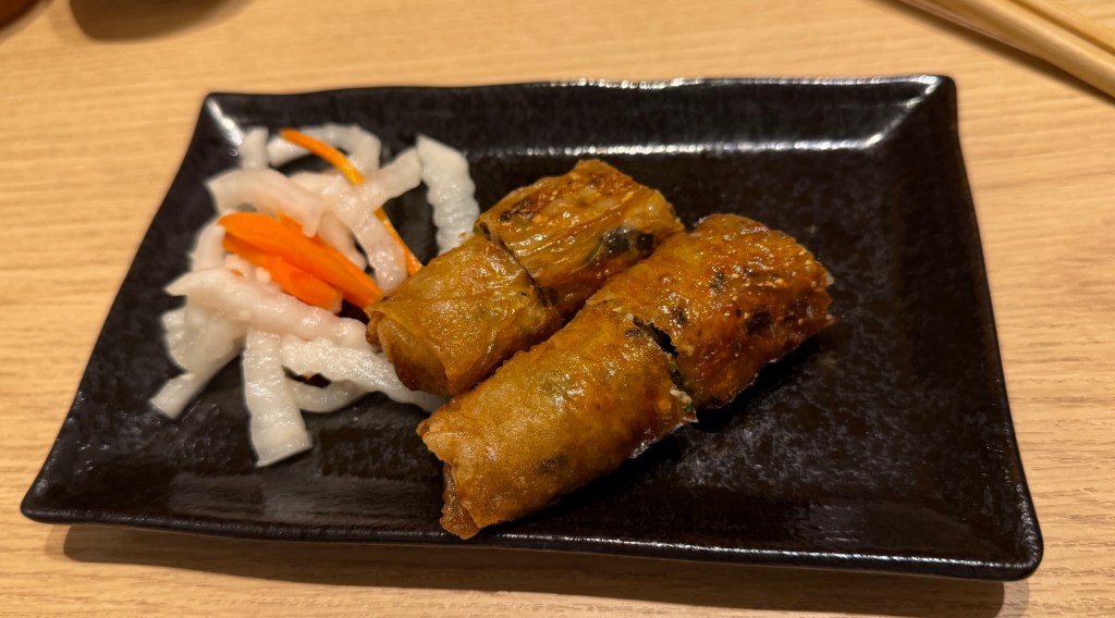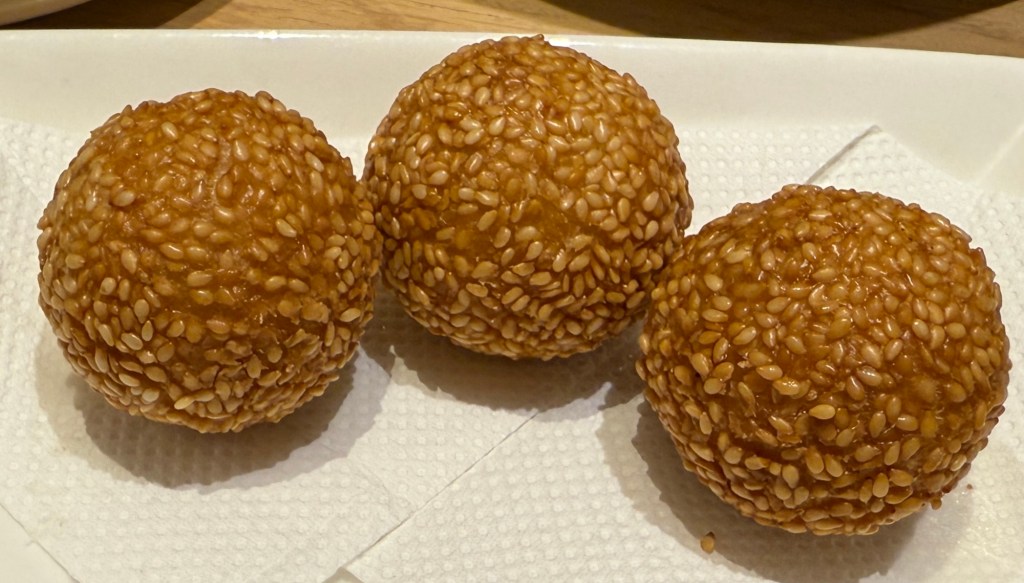 海鮮ラーメンを注文したら焼きそば?が出てきた。ピリ辛でとても美味しかったです。そしてお決まりの春巻きとゴマ団子。