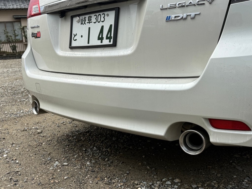 レガシィ購入して気になってたのが、マフラーのショボさ。左右二本出しなのに細くて替えたいなと思ってました。